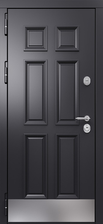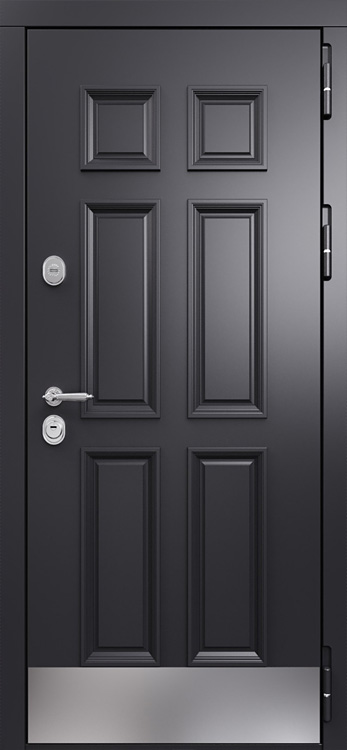Входная дверь с МДФ №566 создана для тех, кто ценит прочность металла и уютный внешний вид в одном решении. Она одинаково хорошо вписывается в частный дом, квартиру или офис, подчеркивая солидность пространства и обеспечивая надежную защиту. Каркас и полотно собраны из профильных труб, усиленных ребрами жесткости, а стальной лист толщиной 2 мм гарантирует устойчивость к взлому и длительный срок службы. С обеих сторон дверь облицована МДФ панелями с ПВХ-покрытием, что делает поверхность более устойчивой к истиранию и мелким повреждениям, сохраняя привлекательность даже при интенсивной эксплуатации. Панели легко очищаются и не выгорают на солнце, благодаря чему дверь подходит и для уличной установки. Два контура уплотнения надежно защищают от сквозняков и посторонних запахов, а при необходимости можно дополнительно усилить конструкцию тепло- и шумоизоляцией. Модель №566 сочетает в себе сдержанный дизайн и функциональность, делая ее практичным выбором для самых разных помещений. Входная дверь с МДФ №566 от производителя: быстрое изготовление и монтаж в Химках, индивидуальные размеры, широкий выбор материалов и фурнитуры, официальная гарантия до 10 лет.