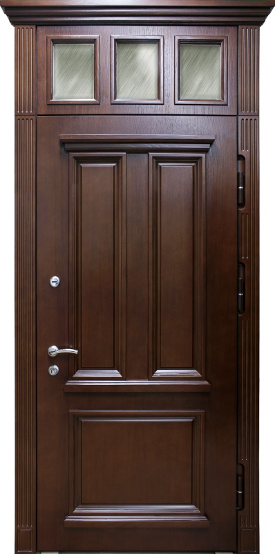 Дверь с сувальдным замком и фрамугой №34 идеально сочетает в себе стиль и надежность. Панель из натурального дерева, использованная как для внешней, так и для внутренней отделки, придает двери благородный и элегантный вид, делая её отличным выбором для помещений с классическим или современным интерьером. Каркас двери выполнен из профильной трубы 50х25 мм и усилен ребрами жесткости, что гарантирует прочность конструкции. Замки от производителей "Просам" и "Мосрентген" с тремя ригелями обеспечивают высокий уровень безопасности. Дверь оснащена уплотнителями с двумя контурами, что гарантирует отличную герметичность, а возможность замены замков и добавления кованых элементов делает её адаптируемой под любые требования. Кроме того, дверь можно дополнить зеркалом, стеклопакетом или видеодомофоном для еще большего комфорта. Входная дверь с сувальдным замком и фрамугой №34 от производителя: быстрое изготовление и монтаж в Химках, индивидуальные размеры, широкий выбор материалов и фурнитуры, официальная гарантия до 10 лет.