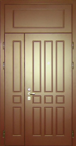 Глухая дверь с отделкой МДФ с фрамугой №35 — идеальный выбор для создания выразительного и функционального входа в любое помещение. Внешняя и внутренняя отделка из ламината придает двери элегантный и современный вид, одновременно обеспечивая защиту от механических повреждений и легкость в уходе. Каркас из профильной трубы 50х25 мм и прочный металлический лист толщиной 2 мм обеспечивают надежность и долговечность. Усиленные ребра жесткости добавляют устойчивости конструкции. В комплекте с двумя замками (сувальдным и цилиндровым) и трехригельной системой, дверь обладает хорошей защитой от несанкционированного доступа. Возможность добавления зеркала, стеклопакета или кованых элементов позволяет настроить дверь под любой интерьер, делая её не только функциональной, но и стильной. Глухая дверь с отделкой МДФ с фрамугой №35 от производителя: быстрое изготовление и монтаж в Химках, индивидуальные размеры, широкий выбор материалов и фурнитуры, официальная гарантия до 10 лет.