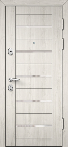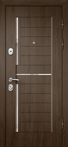 Прочная стальная конструкция с листом металла толщиной 2 мм и надежными ребрами жесткости делает эту модель отличным вариантом для квартир, частных домов и офисов. Каркас и полотно выполнены из профильной трубы, что обеспечивает долговечность и сопротивление взлому, а двойной контур уплотнения защищает от сквозняков и постороннего шума. Отделка с обеих сторон выполнена накладками из МДФ, которые не только придают аккуратный и современный внешний вид, но и отличаются стойкостью к царапинам и ударам. Стальная входная дверь в квартиру №160 может быть изготовлена в любых размерах и вариантах открывания, а систему безопасности дополняют два замка российского производства: сувальдный Просам и цилиндровый Мосрентген, каждый с тремя мощными ригелями. По желанию заказчика возможна установка зеркала, стеклопакета, ковки или умного замка, что превращает изделие из просто двери в продуманное решение для комфортной и безопасной жизни. Стальная входная дверь в квартиру №160 от производителя: быстрое изготовление и монтаж в Химках, индивидуальные размеры, широкий выбор материалов и фурнитуры, официальная гарантия до 10 лет.