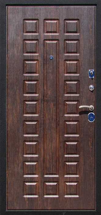 Входная дверь в квартиру ширина стандарт №41 создана как универсальное решение для городских квартир, частных домов и офисных помещений. Конструкция на основе профильной трубы и листа стали толщиной 2 мм обеспечивает прочность и устойчивость к взлому, а рёбра жёсткости добавляют дополнительную надёжность. С обеих сторон дверь облицована плитами МДФ, которые придают поверхности аккуратный внешний вид и защищают её от мелких повреждений. Такой вариант отделки отличается практичностью: панели устойчивы к влаге, сохраняют форму и цвет, даже если дверь эксплуатируется ежедневно. Два контура резиновых уплотнителей не дают проникнуть сквознякам и уличному шуму, а терморазрыв в коробке и полотне препятствует промерзанию в холодное время года. Благодаря стандартной ширине установка не требует сложных подготовительных работ, а при необходимости дверь может быть изготовлена в индивидуальном размере. Входная дверь в квартиру ширина стандарт №41 от производителя: быстрое изготовление и монтаж в Химках, индивидуальные размеры, широкий выбор материалов и фурнитуры, официальная гарантия до 10 лет.