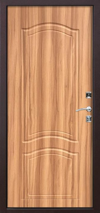 Элегантный ореховый оттенок всегда ассоциируется с надёжностью и уютом, а в сочетании с металлической основой он приобретает ещё и солидный характер. Панели МДФ с ПВХ-покрытием не только придают двери выразительный внешний вид, но и защищают её от случайных царапин, сохраняя поверхность безупречной на долгие годы. Дверь МДФ в частный дом цвета орех №531 создаёт гармоничный акцент на фасаде коттеджа или органично вписывается в интерьер квартиры и офиса. Каркас из профильной трубы и стальной лист толщиной 2 мм образуют прочную основу, усиленную рёбрами жёсткости. Для безопасности предусмотрены два замка российского производства: сувальдный Просам и цилиндровый Мосрентген, оба с надёжной системой ригелей. Дополнительно конструкцию можно разнообразить зеркалом, стеклопакетом или коваными элементами, подчеркнув индивидуальность дома и вкус его владельца. Дверь МДФ в частный дом цвета орех №531 от производителя: быстрое изготовление и монтаж в Химках, индивидуальные размеры, широкий выбор материалов и фурнитуры, официальная гарантия до 10 лет.