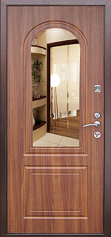 Стальная основа и декоративные элементы делают эту модель одновременно практичной и выразительной. Дверь входная стальная с зеркалом №65 сочетает прочность металла и удобство зеркала, которое помогает визуально увеличить пространство и добавить функциональности интерьеру. Снаружи поверхность покрыта молотковым напылением, устойчивым к царапинам и неблагоприятным условиям, а внутри установлены панели МДФ с ПВХ-покрытием, сохраняющие аккуратный вид даже при интенсивной эксплуатации. Конструкция выполнена из профильной трубы с металлическим листом толщиной 2 мм и усилена рёбрами жёсткости, что гарантирует надежность и устойчивость к механическим воздействиям. Два контура уплотнения с резиновыми вставками обеспечивают защиту от пыли и сквозняков, при желании дверь можно дополнить шумо- и теплоизоляцией. Эта модель объединяет строгий внешний вид, практичную отделку и долговечность, становясь универсальным решением для дома, квартиры или офиса. Дверь входная стальная с зеркалом №65 от производителя: быстрое изготовление и монтаж в Химках, индивидуальные размеры, широкий выбор материалов и фурнитуры, официальная гарантия до 10 лет.