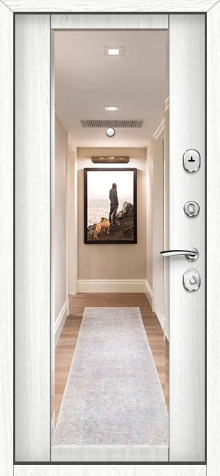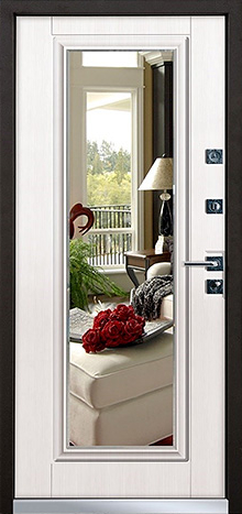 Сдержанный дизайн и продуманная функциональность делают эту модель универсальным решением для дома или офиса. Прочная конструкция на основе профильных труб и стального листа толщиной 2 мм выдерживает серьезные нагрузки и гарантирует надежную защиту. Два контура уплотнителей вместе с резиновым герметиком создают дополнительный барьер для холода и шума, а наличие терморазрыва в коробке и полотне исключает промерзание даже в сильные морозы. Белая входная дверь с зеркалом №74 смотрится особенно эффектно: светлый тон порошковой окраски придает ей аккуратность и визуальную легкость, а встроенное зеркало делает прихожую просторнее и функциональнее. Внутренняя отделка плитой МДФ подчеркивает уют и гармонично вписывается в интерьер. Для безопасности установлены два замка российского производства с надежной ригельной системой, при этом есть возможность заменить их на более современные варианты или дополнить изделие электронным оборудованием и декоративными элементами. Белая входная дверь с зеркалом №74 от производителя: быстрое изготовление и монтаж в Химках, индивидуальные размеры, широкий выбор материалов и фурнитуры, официальная гарантия до 10 лет.