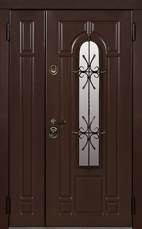 Эта металлическая двухстворчатая дверь с арочным стеклопакетом №15 представляет собой идеальный баланс между эстетикой и прочностью. Арочное стекло добавляет в её дизайн утончённость, а ковка в декоре придаёт изысканный, но в то же время крепкий и надёжный вид. Плита МДФ, используемая как для внешней, так и для внутренней отделки, не только сохраняет прекрасный внешний вид, но и устойчива к механическим повреждениям. Металлическая двухстворчатая дверь с арочным стеклопакетом №15 от производителя: быстрое изготовление и монтаж в Химках, индивидуальные размеры, широкий выбор материалов и фурнитуры, официальная гарантия до 10 лет.