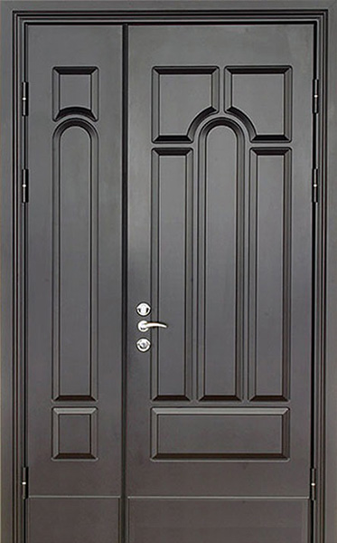 Металлическая двухстворчатая дверь для дома цвета графит №27 – это стильное и надежное решение для вашего жилья. Внешняя и внутренняя отделка выполнены из МДФ, что придает двери изысканный вид и увеличивает её стойкость к механическим повреждениям. Цвет графит придаёт двери современный и элегантный оттенок, который легко впишется в интерьер как частных домов, так и современных офисов. Металлическая двухстворчатая дверь для дома цвета графит №27 от производителя: быстрое изготовление и монтаж в Химках, индивидуальные размеры, широкий выбор материалов и фурнитуры, официальная гарантия до 10 лет.