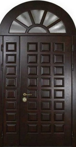 Входная металлическая дверь для частного дома со стеклом и ковкой №29
