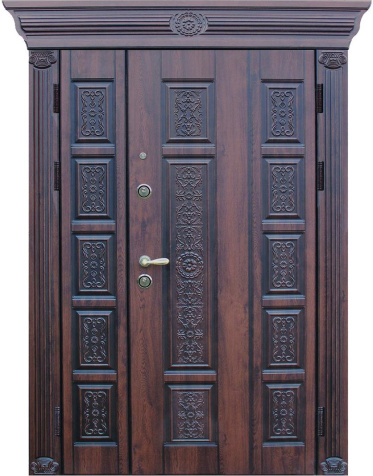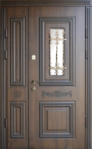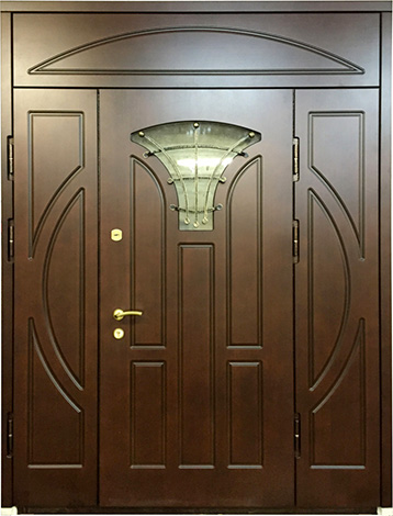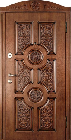 Арочный проём всегда смотрится благородно и подчёркивает архитектурный стиль дома, а витраж вносит в фасад лёгкость и игру света. Арочная входная дверь с витражом в частный дом №69 сочетает прочную металлическую основу с отделкой панелями из натурального дерева, которые сохраняют свою красоту долгие годы и стойко переносят ежедневную эксплуатацию. В конструкции предусмотрен лист стали толщиной 2 мм и система ребер жёсткости, что обеспечивает высокий уровень безопасности и долговечности. Терморазрыв в коробке и полотне защищает от промерзания и появления конденсата, сохраняя тепло в доме даже в сильные морозы. Итальянские замки Cisa цилиндрового и сувальдного типа дополняют защиту, гарантируя надёжность при ежедневном использовании. Возможность индивидуальной отделки, добавления зеркала, кованых элементов или стеклопакета делает эту модель не только функциональной, но и выразительной деталью экстерьера. Арочная входная дверь с витражом в частный дом №69 от производителя: быстрое изготовление и монтаж в Химках, индивидуальные размеры, широкий выбор материалов и фурнитуры, официальная гарантия до 10 лет.