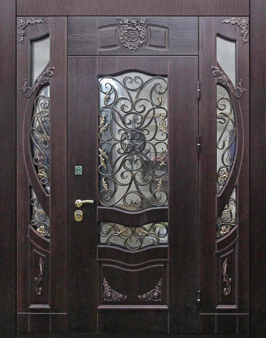Натуральное дерево в отделке придает входной группе солидность и благородство, подчеркивая статус хозяев дома. Прочная основа из стальной профильной трубы с листом металла толщиной 2 мм и системой ребер жесткости гарантирует устойчивость и надежность конструкции даже при интенсивной эксплуатации. Входная дверь со стеклом №390 сочетает защитные качества стали и декоративность деревянных панелей, а вставка из стекла делает массивное полотно визуально легче и добавляет естественного света в интерьер. Для комфорта и практичности предусмотрены два контура уплотнителей, блокираторы и возможность выбора направления и типа открывания. Итальянские замки Cisa — цилиндровый и сувальдный — обеспечивают высокий уровень безопасности благодаря нескольким ригелям. Такая дверь подходит для коттеджей и загородных домов, где важна не только надежность, но и выразительный внешний вид парадного входа. Входная дверь в частный дом со стеклом №14 от производителя: быстрое изготовление и монтаж в Химках, индивидуальные размеры, широкий выбор материалов и фурнитуры, официальная гарантия до 10 лет.