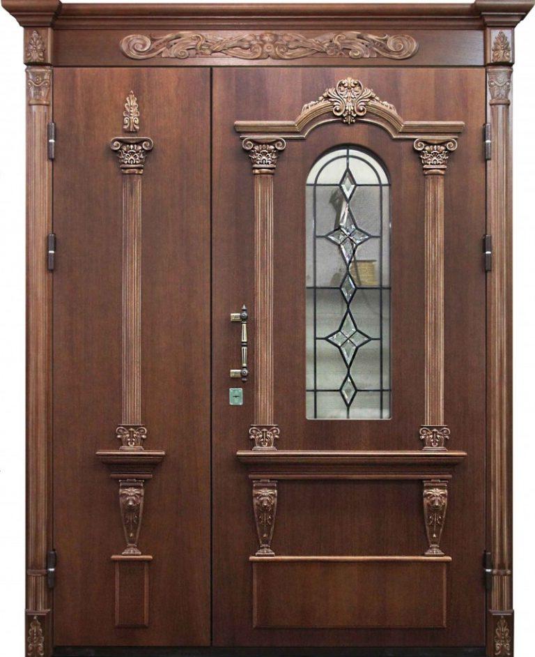 Эффектная дверь входная с окном №337 создана для парадных решений в коттеджах и частных домах, где важен не только уровень безопасности, но и выразительность архитектурного облика. Прочный каркас из стальной профильной трубы с листом металла толщиной 2 мм и системой ребер жесткости обеспечивает надежность конструкции, а отделка массивом дерева придает ей теплый и представительный вид. Натуральное дерево отличается стойкостью к царапинам и ударам, долго сохраняет форму и цвет, что делает дверь практичной для эксплуатации на улице. Встроенное окно добавляет естественного света и визуально облегчает массивное полотно, создавая гармонию между защитой и эстетикой. Двойной контур уплотнителей препятствует проникновению холода и влаги, блокираторы усиливают безопасность. Такая высокая дверь становится не только защитой, но и ярким акцентом фасада, подчеркивающим статус хозяев дома. Дверь в частный дом входная с окном №23 от производителя: быстрое изготовление и монтаж в Химках, индивидуальные размеры, широкий выбор материалов и фурнитуры, официальная гарантия до 10 лет.