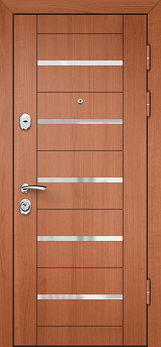 Современная входная дверь с цилиндровым замком №21 сочетает строгую надежность металлической конструкции и аккуратный внешний вид. Каркас из профильной трубы и лист стали толщиной 2 мм образуют прочный щит, усиленный ребрами жесткости и блокираторами. Накладки из МДФ придают полотну более «домашний» облик: материал не только эстетичен, но и практичен — ПВХ-покрытие стойко переносит небольшие повреждения и сохраняет первозданный вид долгие годы. Такая дверь подходит для квартиры, офиса или частного дома, где важно совместить защиту и стиль. Цилиндровый замок обеспечивает удобное и надежное закрывание, а два контура резинового уплотнителя защищают от сквозняков и лишнего шума. При желании возможно дополнить конструкцию тепло- и шумоизоляцией или установить замки другого типа, включая современные электронные системы. Современная входная дверь с цилиндровым замком №21 от производителя: быстрое изготовление и монтаж в Химках, индивидуальные размеры, широкий выбор материалов и фурнитуры, официальная гарантия до 10 лет.